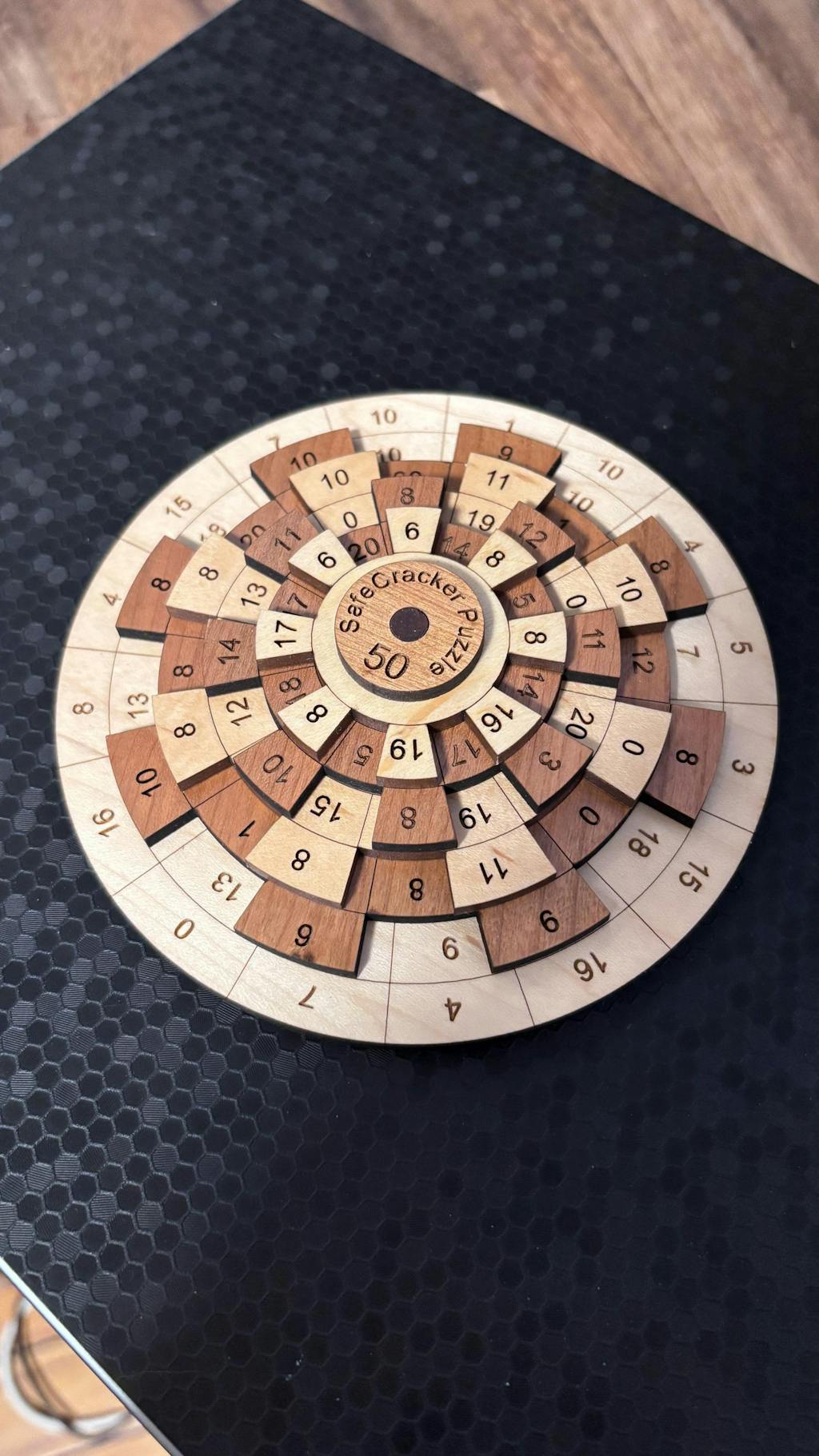 Measuring a bit over 5" in diameter, this puzzle arrives unsolved in the package, accompanied by a picture of the solved solution. Whether you're a seasoned puzzle solver or a novice looking for a captivating challenge, the Safecracker 50 Puzzle is sure to impress with its beauty and complexity.